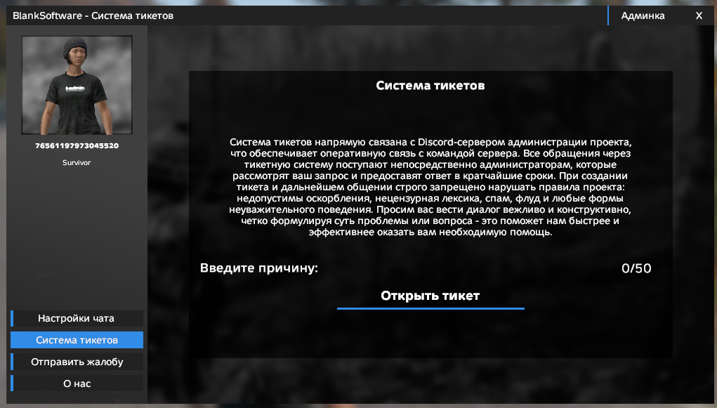 Система тикетов с прямой интеграцией в Discord. Работает только на выделенном сервере (VDS), включает в себя дискорд бота.